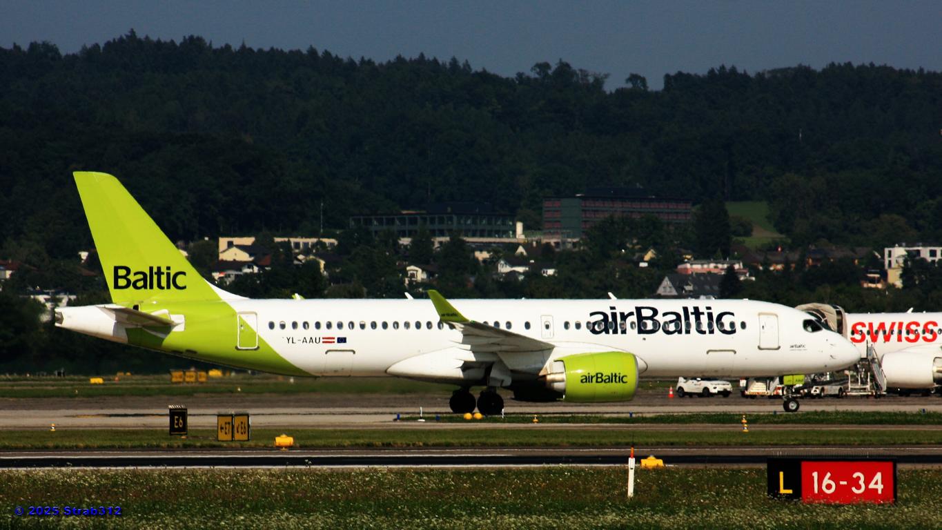 Auf der Piste 14/32 landet gerade der Airbus A220-300 (HB-JCA) der Swiss. Die Boeing 787-9 Dreamliner (A6-BLW) der Etihad Airways nach Abu Dhabi wartet auf der Piste 16/34 auf die Startfreigabe, während die Boeing 777-312(ER) der Singapore Airlines (9V-SWL) nach Singapur wartet um auf die Piste 16/34 zu rollen.