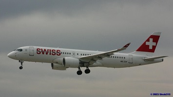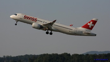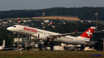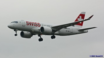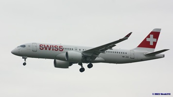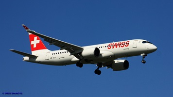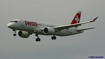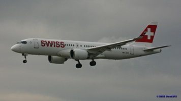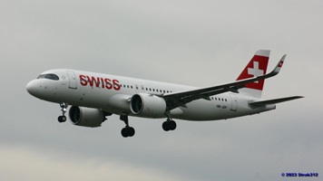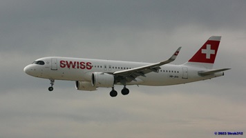Auf der Piste 14/32 landet gerade der Airbus A220-300 (HB-JCA) der Swiss. Die Boeing 787-9 Dreamliner (A6-BLW) der Etihad Airways nach Abu Dhabi wartet auf der Piste 16/34 auf die Startfreigabe, während die Boeing 777-312(ER) der Singapore Airlines (9V-SWL) nach Singapur wartet um auf die Piste 16/34 zu rollen.