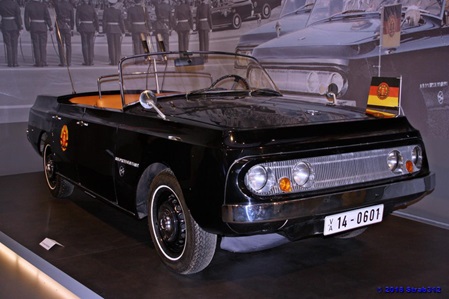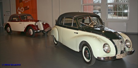 Ein IFA 8 (hinten) und ein IFA F9 (vorn) im August-Horch-Museum in Zwickau.