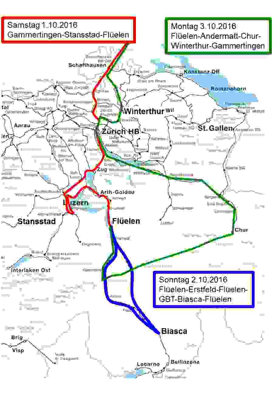 Am 3. Oktober beginnen wir unsere Heimreise früh morgens u.a über die Strecken des Clacier-Express nach Chur. Danach fahren wir weiter über Zürich – Winterthur nach Oberwinterthur. Dort wird eine Besichtigung des SBB Depot der S-Bahn Zürich auf dem Programm stehen, bevor wir unsere Reise weiter über Schaffhausen – Singen – Tuttlingen – nach Gammertingen antreten. Gammertingen erreichen wir dann am Abend um 20.08 Uhr.