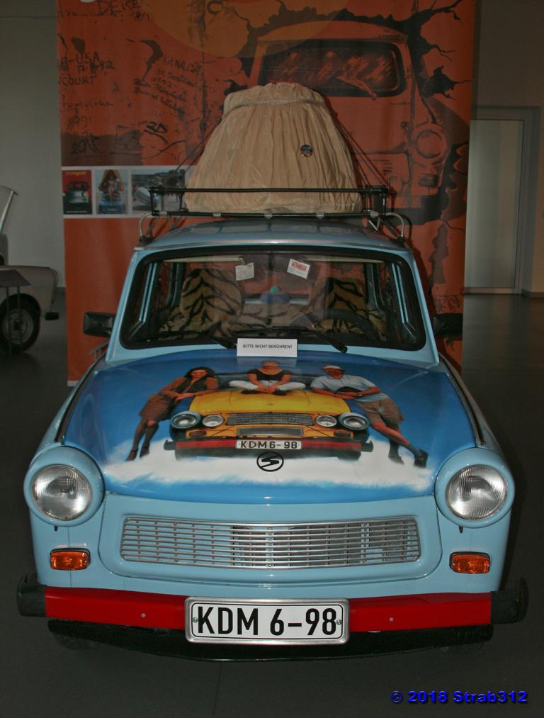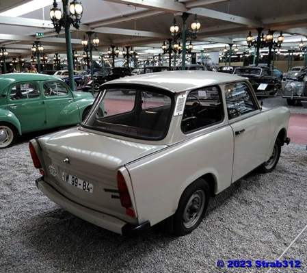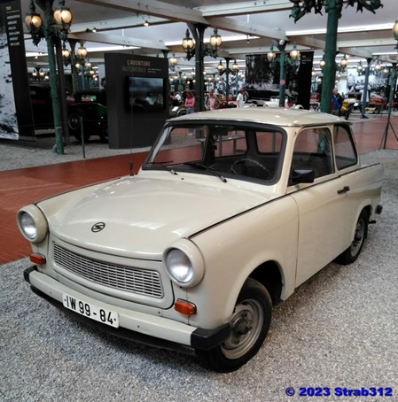 Ein Trabant P601 Baujahr 1986, 100 km/h, 26 PS, 2 Zylinder, 595 ccm wird im Musée national de l'Automobile - Collection Schlumpf in Mulhouse (Mühlhausen) im Elsass/Frankeich ausgestellt.